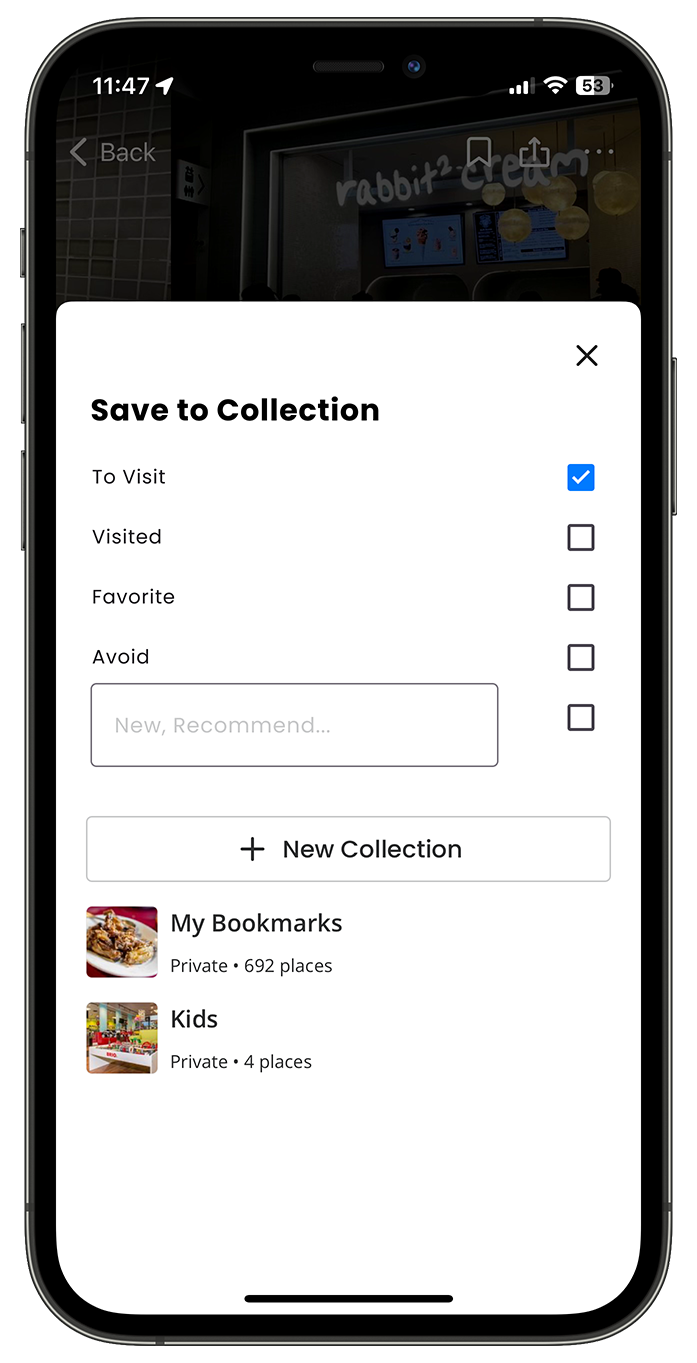 One such example is Yelp's popular "Collection" feature, which lets users save and share lists of favorite places. To stay competitive, it must provide a more personalized experience than Google's generic "Saved" lists.