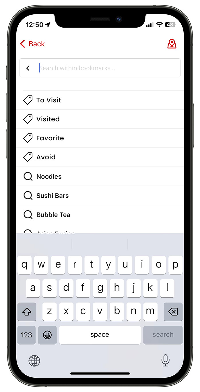 Custom tags, such as “To Visit”, “Favorite,” and “Avoid” are
